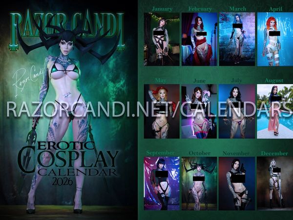 RazorCandi signed NSFW calendar containing 12 (NSFW) images+the cover with some of my best recent cosplay works and this year! All images are tasteful artistic (NSFW) photos.